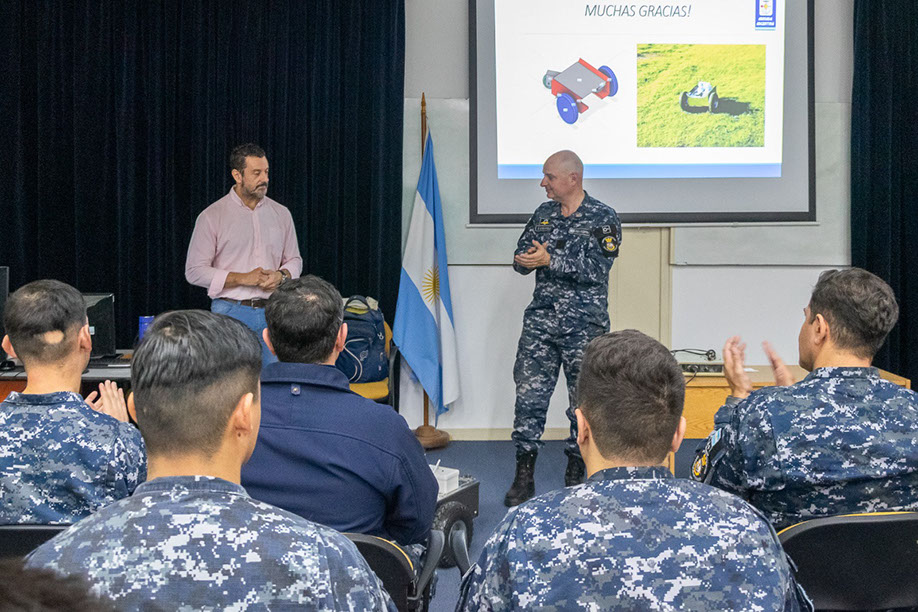 En el marco del Proyecto de Investigación acreditado por la Universidad de la Defensa Nacional (UNDEF), “Robot controlado para exploración y operaciones en ambientes de riesgo”, el jueves 15 de mayo del corriente, se llevó a cabo en la Sede Educativa Escuela de Oficiales de la Armada una jornada organizada por el Departamento de Investigación de dicha Institución.