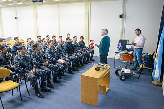 En el marco del Proyecto de Investigación acreditado por la Universidad de la Defensa Nacional (UNDEF), “Robot controlado para exploración y operaciones en ambientes de riesgo”, el jueves 15 de mayo del corriente, se llevó a cabo en la Sede Educativa Escuela de Oficiales de la Armada una jornada organizada por el Departamento de Investigación de dicha Institución.